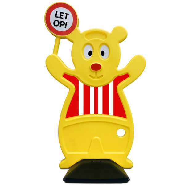 De vriendelijke beer is voorzien van klasse 1 en klasse 3 reflectie stickers, zodat hij ook bij duisternis goed opvalt.