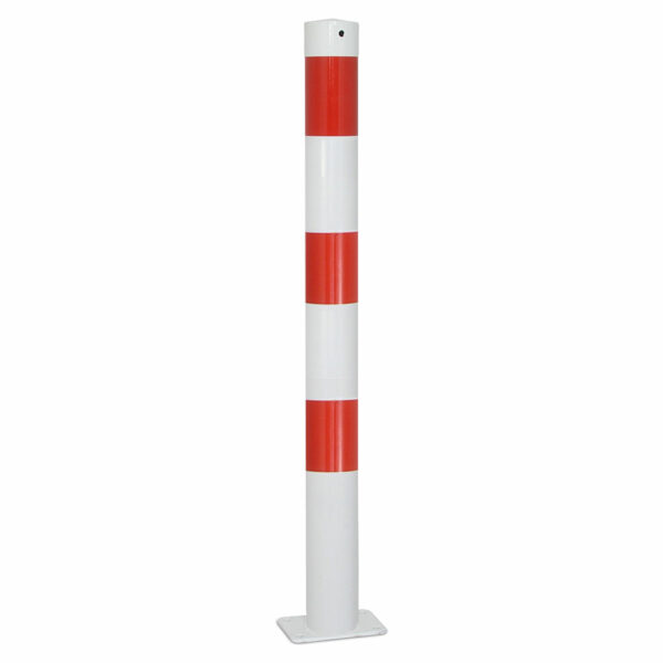 Afzetpaal met voetplaat. Verzinkte paal wit met rode reflectie