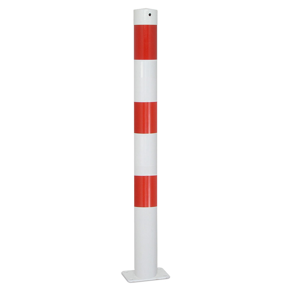 Verzinkte afzetpaal met voetplaat wit met rode reflectie Ø76mm