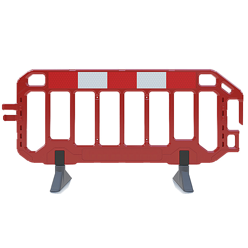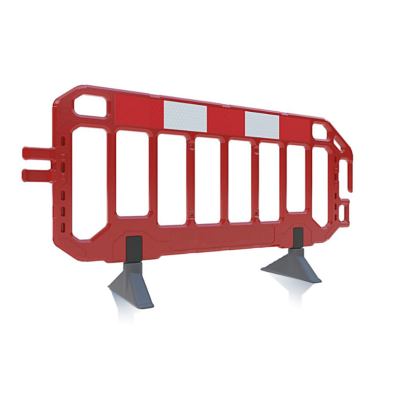 Dit oranje afzethek wordt standaard geleverd met zwarte anti-trip voeten en past naadloos op andere versies van het Cross hek.