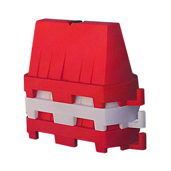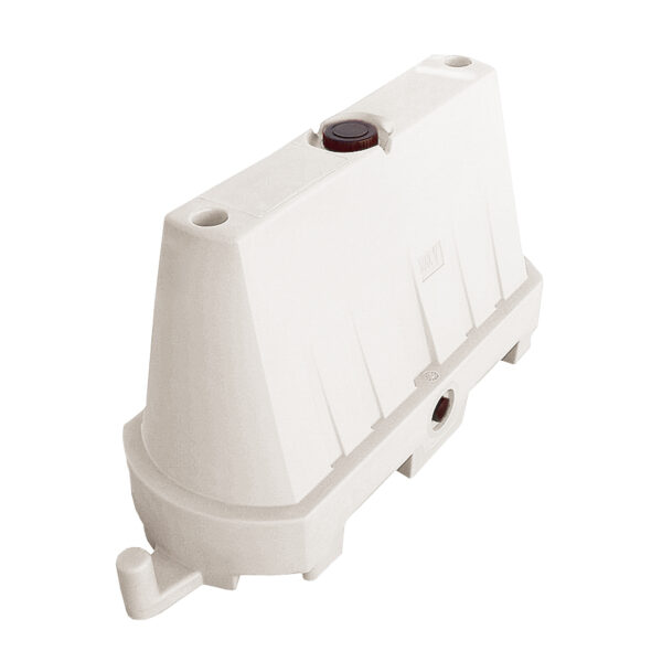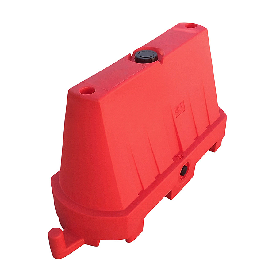 Voor extra stabiliteit kan de barrier worden gevuld met water of zand via de twee schroefdoppen: een vuldop bovenop en een aftapdop onderaan. Een indicator geeft het maximale vulniveau aan. Gevuld vormt de barrier een stevige en veilige afbakening die windsnelheden tot 88 km/uur weerstaat.
