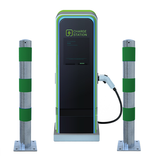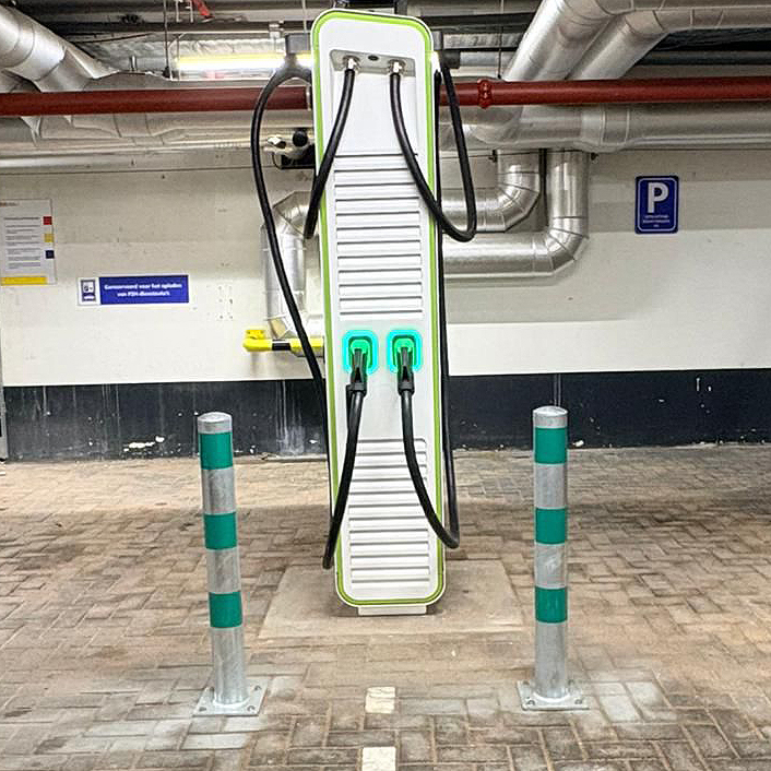 Verzinkte beschermpaal voor laadpaal. Beschermpaal van verzinkt staal met een hoogte van 90 cm en een diameter van 10 cm.